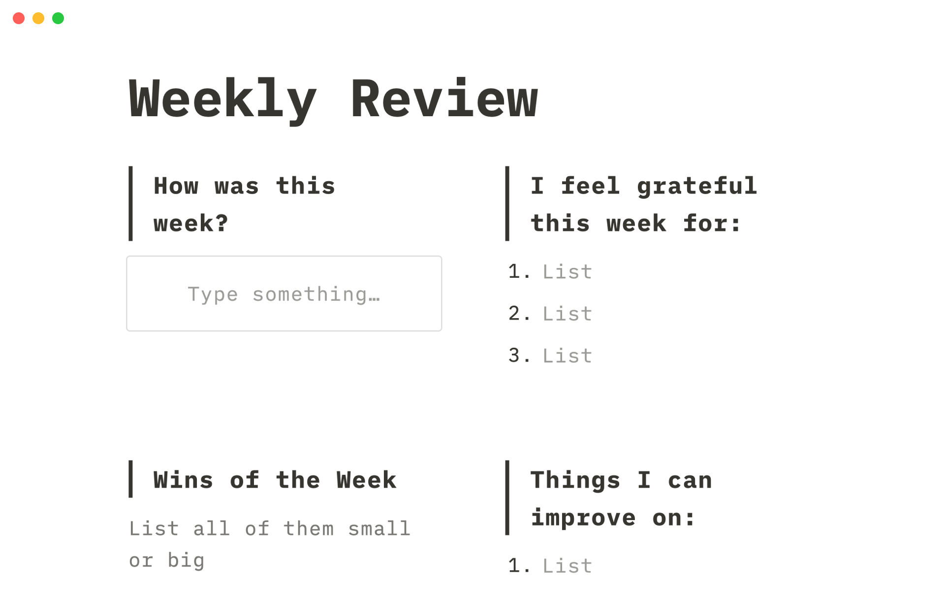 Don’t just grind through the week. Reflect and celebrate what you’ve completed—big or small. It builds momentum and prevents burnout.